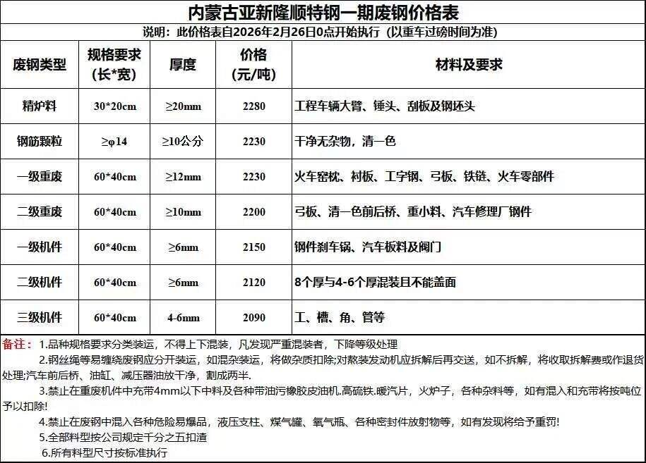 *月**日上午*點,內(nèi)蒙古中唐特鋼廢鋼采購價格所有料型含稅降**元/噸。